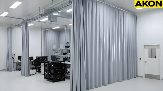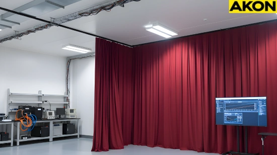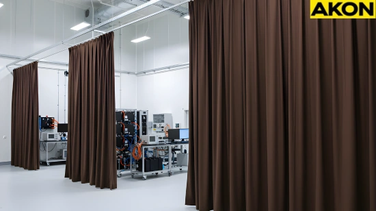 This flexible fabric solution is great for labs that need quick reconfiguration between different prototype setups. It divides shared environments cleanly without adding unnecessary barriers or requiring heavy hardware.