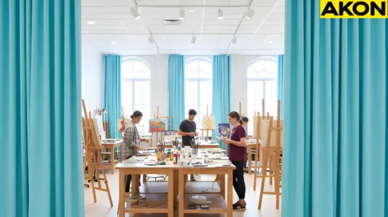Yes. Gallery and Studio Curtains work as movable partitions that divide classrooms or studios using smooth-gliding tracks while keeping the room’s open, creative feel.