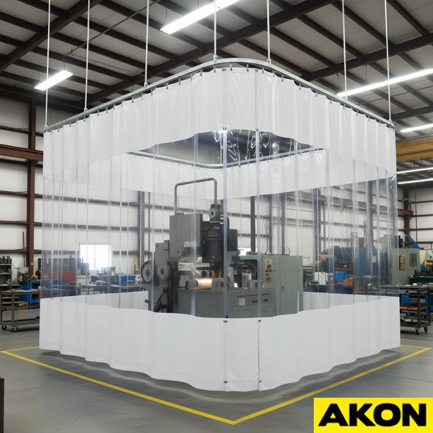 They typically use industrial-grade vinyl, polyester scrim reinforcement, and optional insulation or acoustic layers. Frames and track systems often are galvanized steel or aluminum to ensure durability, corrosion resistance, and compatibility with heavy-duty environments.