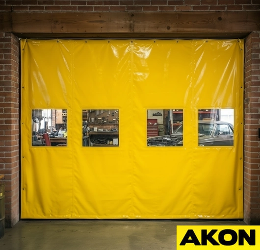 The large door covers are an effective way of dividing garages, shops, warehouses, and other rooms. They are designed for both outdoor and indoor use. They will completely cover any large opening and prevent temperature loss. With the use of anchor straps which securely connect to the floor, even harsh storms won't be able to budge the curtain door.