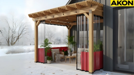 Pergola | Fully open sides allow wind exposure | Adds removable clear panels to block cold air while letting sunlight in | Custom-fit panels with snaps |