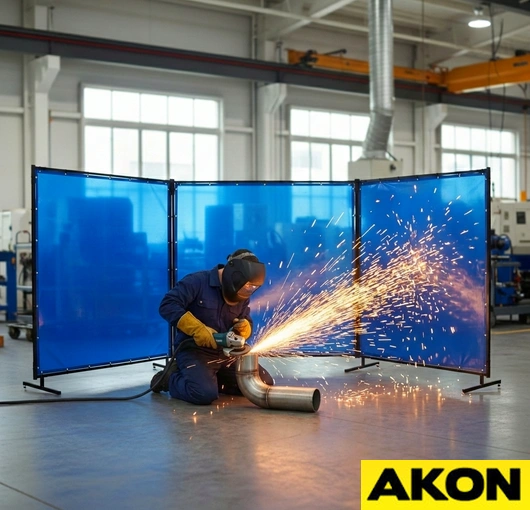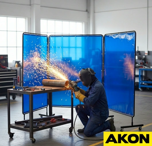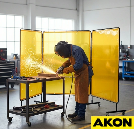 WARNING: Tinted transparent vinyl screens provide protection for casual passerby only and are not intended as a substitute for normal eye protection for close or long-term viewing. The user must wear protective eye-wear suitable for the application. Clear transparent vinyl does not reduce harmful UV light from welding operations.