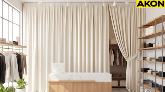 Curtains provide unmatched flexibility when store layouts need to change. Whether adding a seasonal display, enlarging a storage zone, or rearranging dressing areas, they can be repositioned or resized with ease.