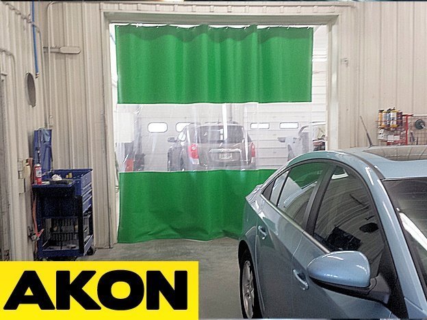 Akon has a full line of shop divider curtains which allow you to divide up your work space creating a cleaner look. Installed from above or as free-standing curtains. The shop curtains are easily configured for your workshop and are very easy to install. The plastic shop curtains are also ideal for body shops.