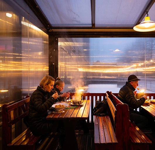 A protected patio also gives you something most of your competition doesn't offer. Customers actually want to dine outside in winter. There's something memorable about sitting outside while it's snowing, staying warm and comfortable under proper protection. That's the kind of experience people talk about and come back for. You can't buy that kind of word-of-mouth marketing.