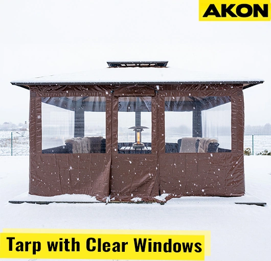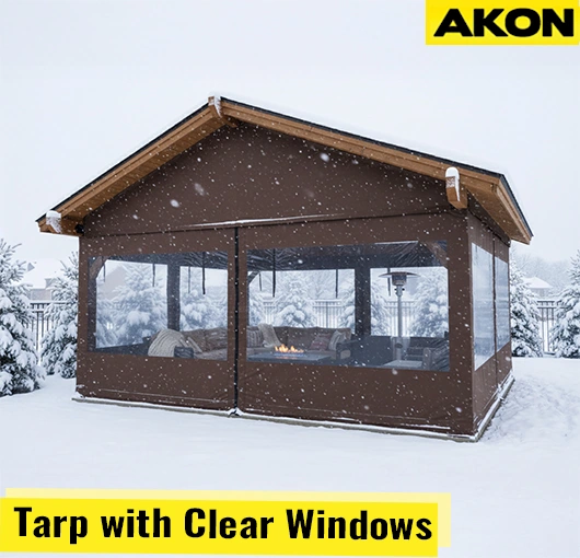 AKON's Tarp with Clear Windows is the heavy-duty option for serious weather conditions. These are professional-grade tarps built to handle harsh winters, with clear window panels strategically placed throughout so you're not completely closed off from the outdoors. You still get views and natural light coming through.