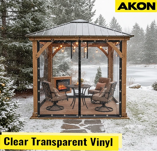 AKON's Heavy-duty clear vinyl blocks wind and snow while maintaining your view of the outdoors. You can see right through them, which keeps the space feeling open and airy while natural light flows in freely.