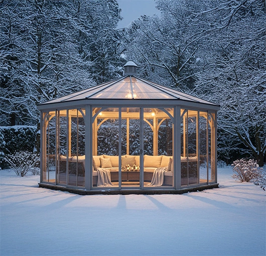A winterized gazebo gives you something pretty special. You can sit outside in comfort during a snowstorm. You can set up a home office with actual natural light (not just another corner of your bedroom). Some people even use them for small winter parties. The space stays protected but you're not completely cut off from the outdoors.