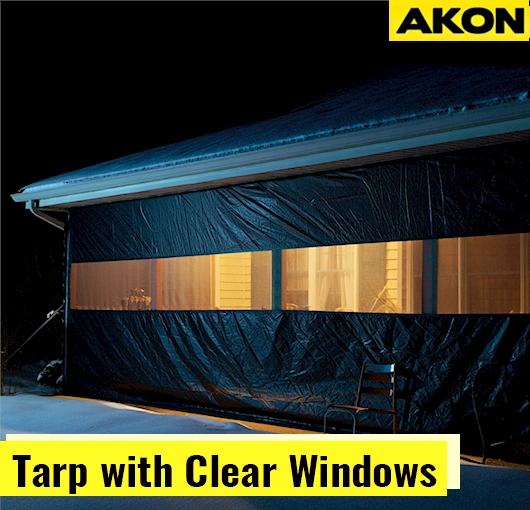 AKON gives you three great choices to meet your wants. Clear vinyl enclosures let in natural light but keep out winds and snow. Foam backing is added to insulated vinyl enclosures to keep you warmer and save energy, making them great for heated porches. A tarp with clear window pieces is an affordable way to protect your space while still letting the light in.